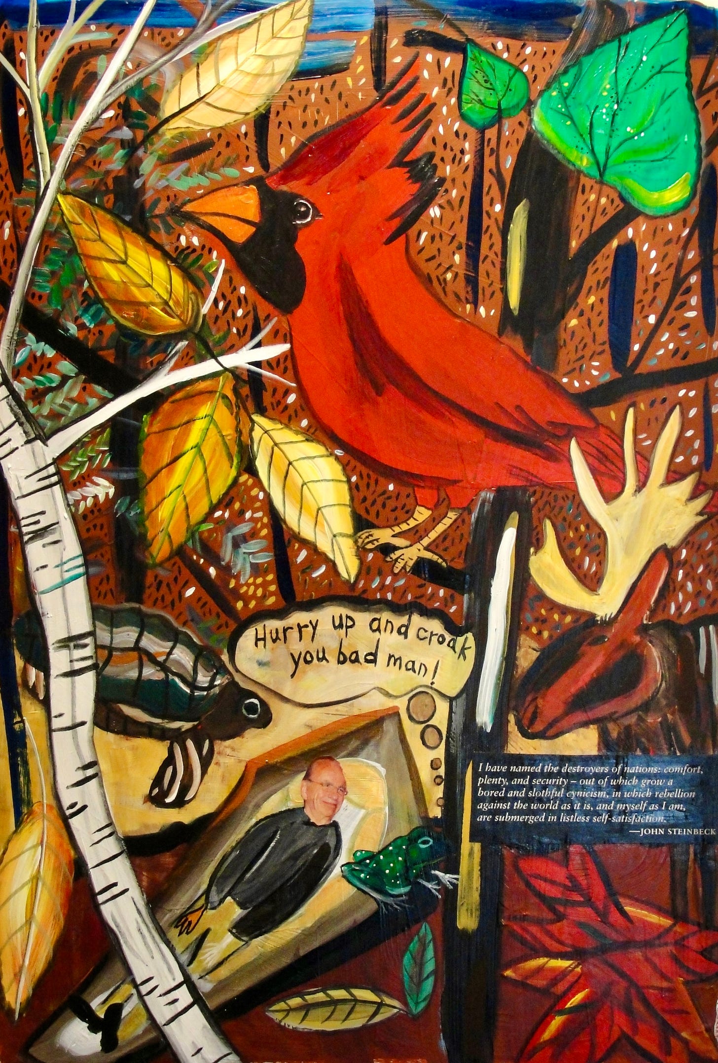 I don’t know why Скотт accused me of “pushing for presidential assassination to impress the far left”—maybe he wrongly interpreted a provocative title from one of my paintings? He definitely does not know what the term “left” means. In a world without justice for the weakest among us, I actually do wish a speedy natural death upon any President who protects his power at the expense of the nation’s general health and well being. I don’t respect abuse of power by any person, from low-level agency to those among the highest. I am already the most “left” person I know, and can’t go much further without going to jail, or worse. Anyway, there is no “left” party in the U.S.A. The party in charge at present is on the far right, and the other one exists to do its public relations. Both parties feed and ignore the ongoing genocide in Palestine. Both parties are harboring a President, present and past, who might have had sex with kids, and/or helped cover up the crimes of those who did. FOX News, CNN, The New York Times, WAPO, MSNBC, and PBS are aiding in the cover up.