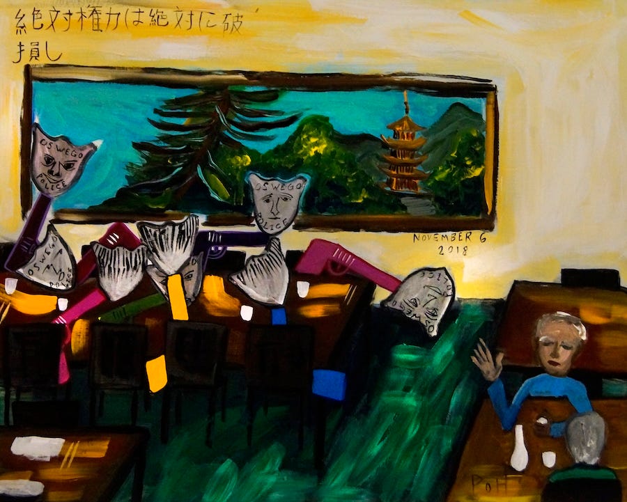 I should have known there was something sickly wrong with Скотт for not wanting to quit immediately. Was it trauma? Colleagues committing murder, and then having to go to work the next day like nothing happened. Come to think of it, how could anyone not already in a cult, choose to continue work in law enforcement that is so over-the-top violent, exposing the many negative attributes and emotions? Fear, hate, distrust, disgust, discrimination, prejudice, racism, anxiety, suspicion, self-hate, cowardice, revulsion, timidity… Can an American corrections officer go to work with any self respect under such a system of obvious abuse? We know that power corrupts—all power, not just the absolutist type. Conversely, I approach work void of any power outside the boundary of my own body. I work with self-respect, enthusiasm, even love sometimes, and yes, the darker emotions come and go all day. But they’re under control, I believe, because I am fortunate to appreciate life as a gift. Likewise, the cashier stands behind the counter in her own state of dreaming. Even when her thoughts turn negative, she cannot gang up with other cashiers and the stock boy to beat to a coma, then from a coma to death, a handcuffed customer. That system just doesn’t exist. And there are a million more jobs like painter and cashier, that will not commit murder under any condition whatsoever. People with their pride and person still in tact, could not continue to work for state-approved gang violence and murder. Easy-peasey decision among citizens in any sane society.